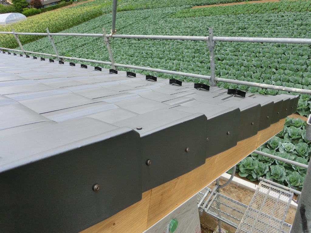 前回の屋根工事で瓦を敷きつめた画像が1と7枚目。