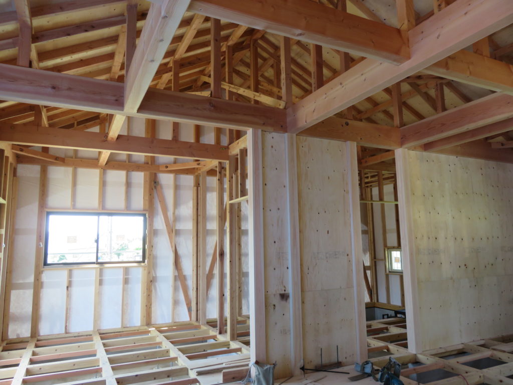 内装大工(真壁と梁が見事です)